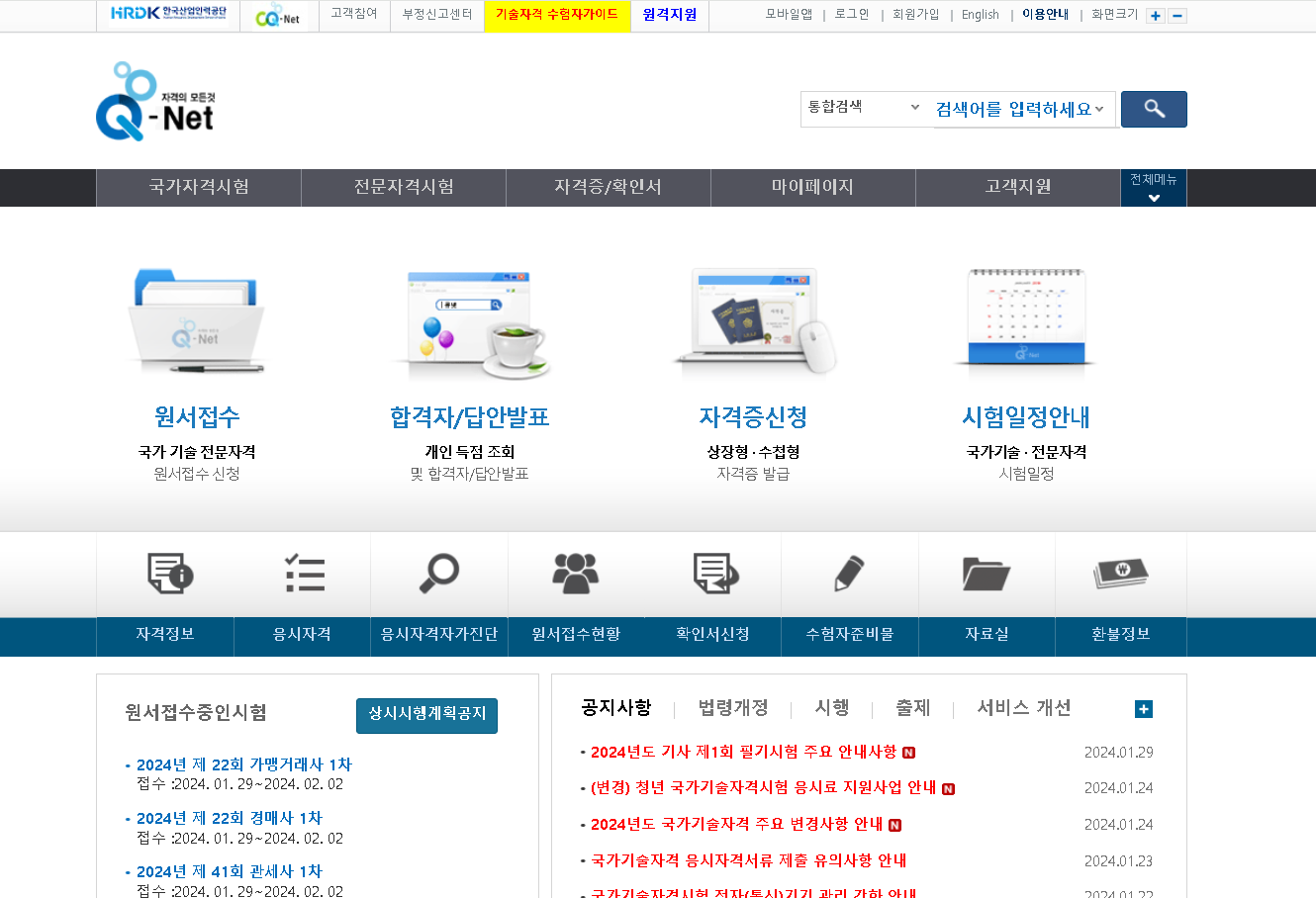 큐넷 (Q-NET)은 한국산업인력공단에서 운영하는 홈페이지로 국가기술자격 시험을 주관하고 있습니다.