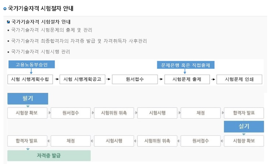 국가기술자격 시험절차는 아래 사진과 같이 진행되오니 참고하시길 바랍니다.
