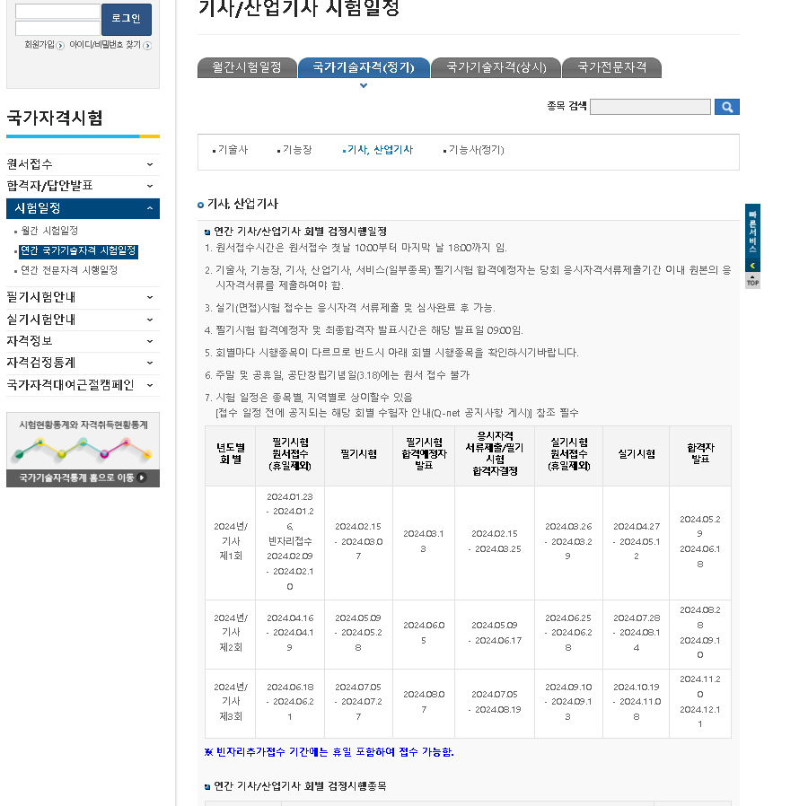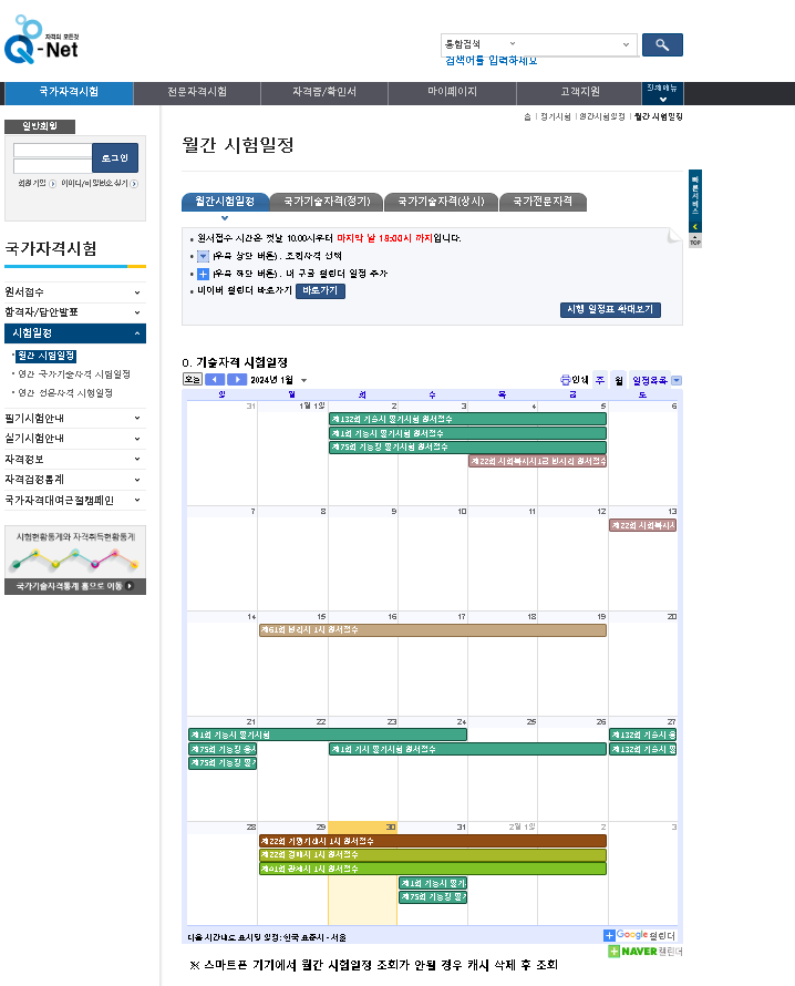 월간 시험일정이나 연간 국가기술자격 시험일정 등 한 눈에 파악할 수 있도록 되어 있어서 시험을 준비하시는 분들에게는 도움이 될 거 같습니다.