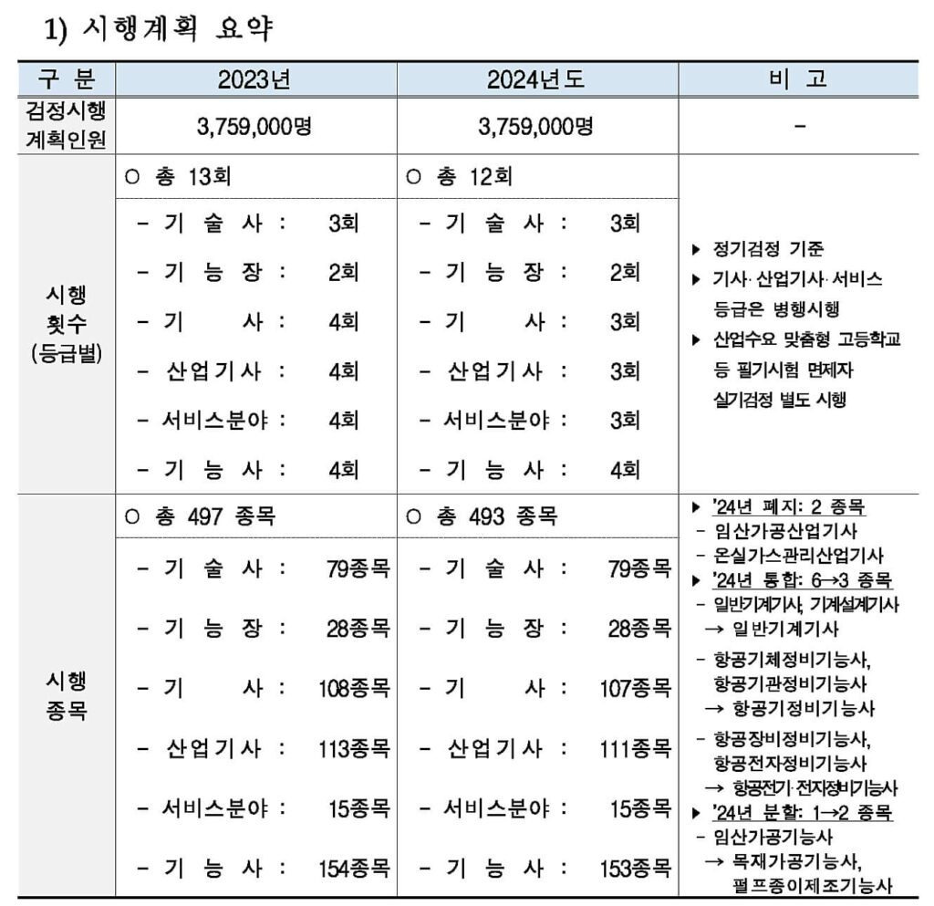 2024년에는 총 12회의 시험이 계획되어 있으며, 응시자 수는 3,759,000명으로 동일합니다. 각 시험의 카테고리와 세부 일정은 다음과 같습니다: