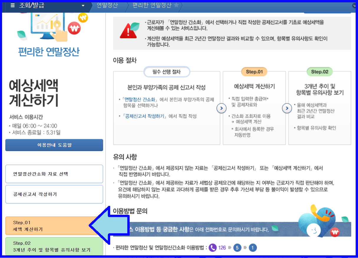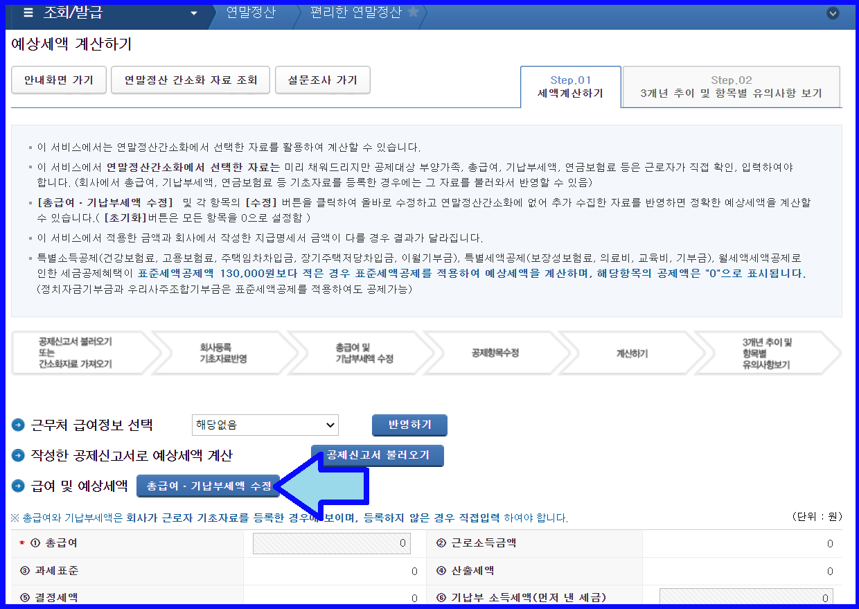 3) Step.01 세액 계산하기 클릭하기